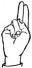 На ћирилици написано КАТАРИНА САНДО састоји се из 13 слова [?]. Исписано ћириличном једноручном азбуком за глувонеме: